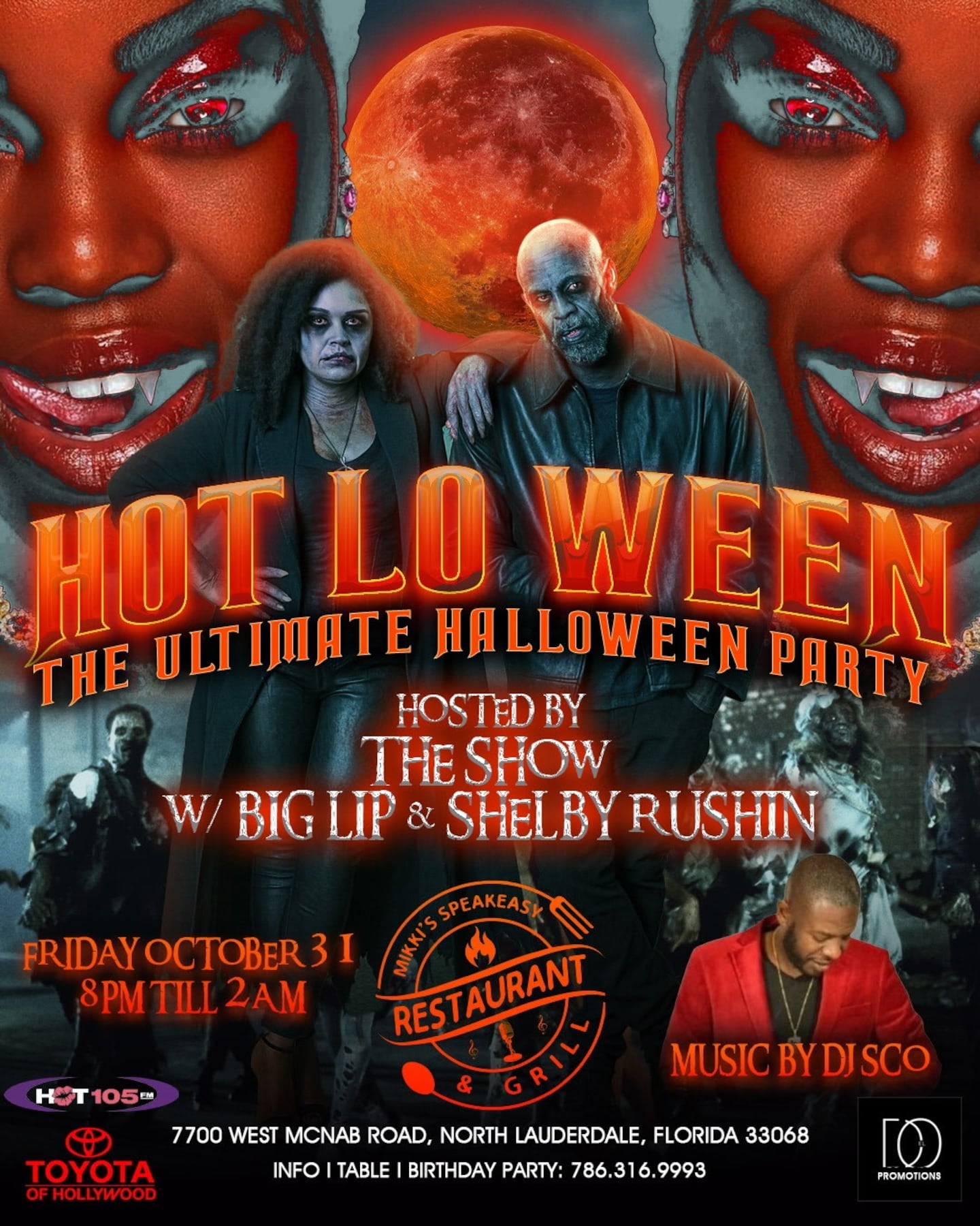 NO PURCH. NEC. Open to legal FL res. of Miami-Dade and Broward Counties; 18+. To enter, listen to HOT 105 between 10/11/25-10/31/25. Odds vary. Prize: (1) pair of tickets to The Vibe Hot-loween Edition, Friday October 31st @ Mickeys Speak Easy, hosted by The Show w Big Lip and Shelby Rushin. Retail value of: $100. Rules: WHQT Rules – HOT 105! (hot105fm.com)