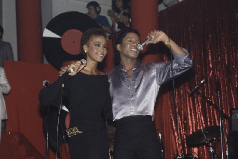 American singer Whitney Houston (1963 - 2012) performs with Jermaine Jackson at The Limelight in New York City, 1st July 1984. (Photo by Dave Hogan/Getty Images)