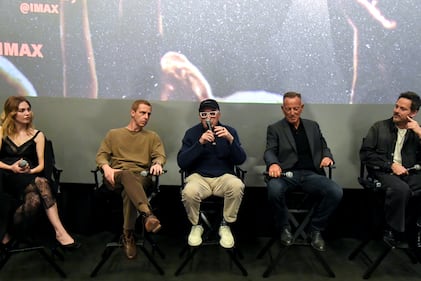 Springsteen: Deliver Me From Nowhere IMAX Special Screening And Q & A CENTURY CITY, CALIFORNIA - OCTOBER 21: (L-R) Odessa Young, Jeremy Strong, Jon Landau, Bruce Springsteen, Scott Cooper, and Daniel Wall speak onstage during the Springsteen: Deliver Me From Nowhere IMAX Special Screening and Q & A at The AMC Century City 15 in Los Angeles, CA on October 21, 2025. (Photo by Alberto E. Rodriguez/Getty Images for 20th Century Studios ) (Alberto E. Rodriguez/Getty Images for 20th Century St)