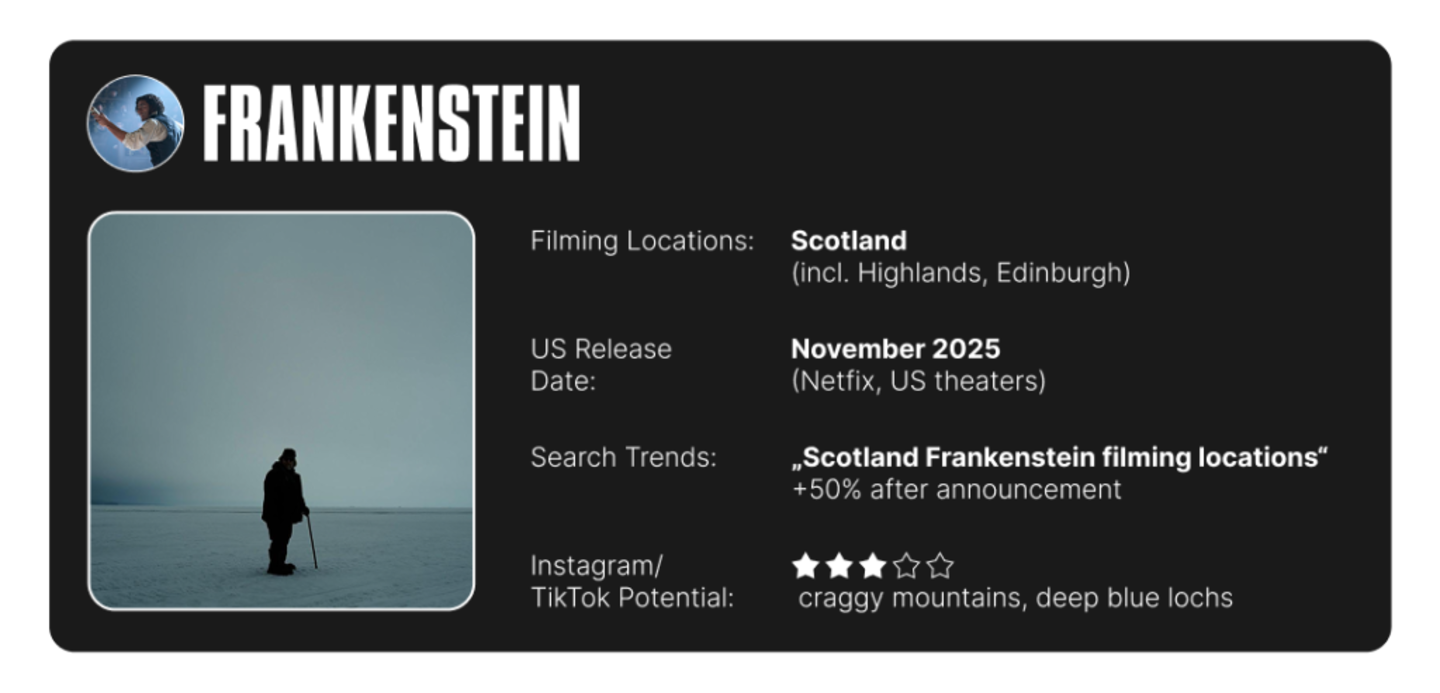 Scotland is no stranger to set-jetting. Since the release of “Braveheart,” the small Scottish town of Stirling, home to the National Wallace Monument, has seen more than $33 million in tourism revenue. Now, as renowned director Guillermo del Toro prepares to release his adaptation of “Frankenstein,” a new wave of viewers may be motivated by the ephemeral beauty of craggy mountains and deep blue lochs to make the journey.