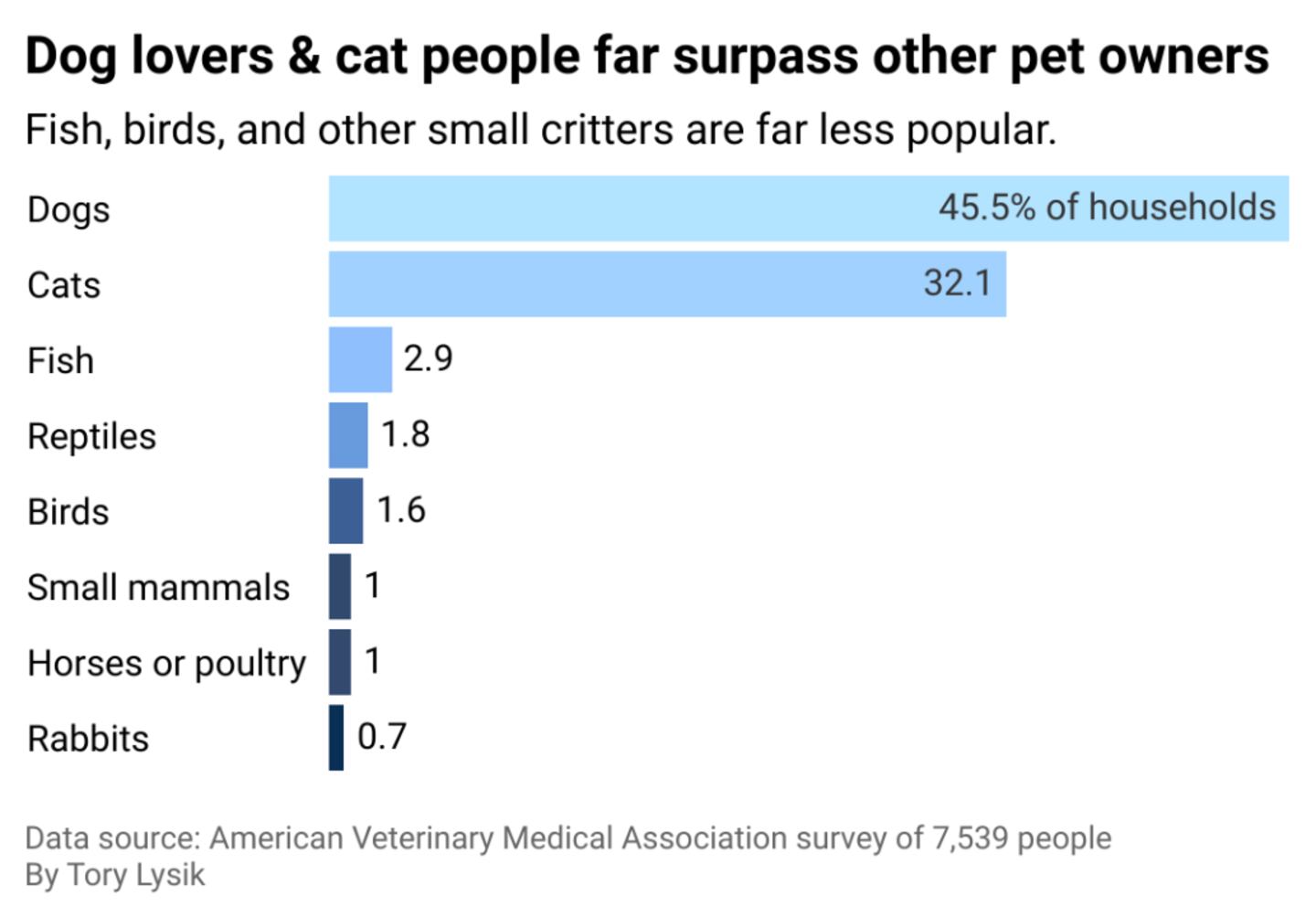 Americans prefer dogs to cats as pets by a wide margin, according to the data