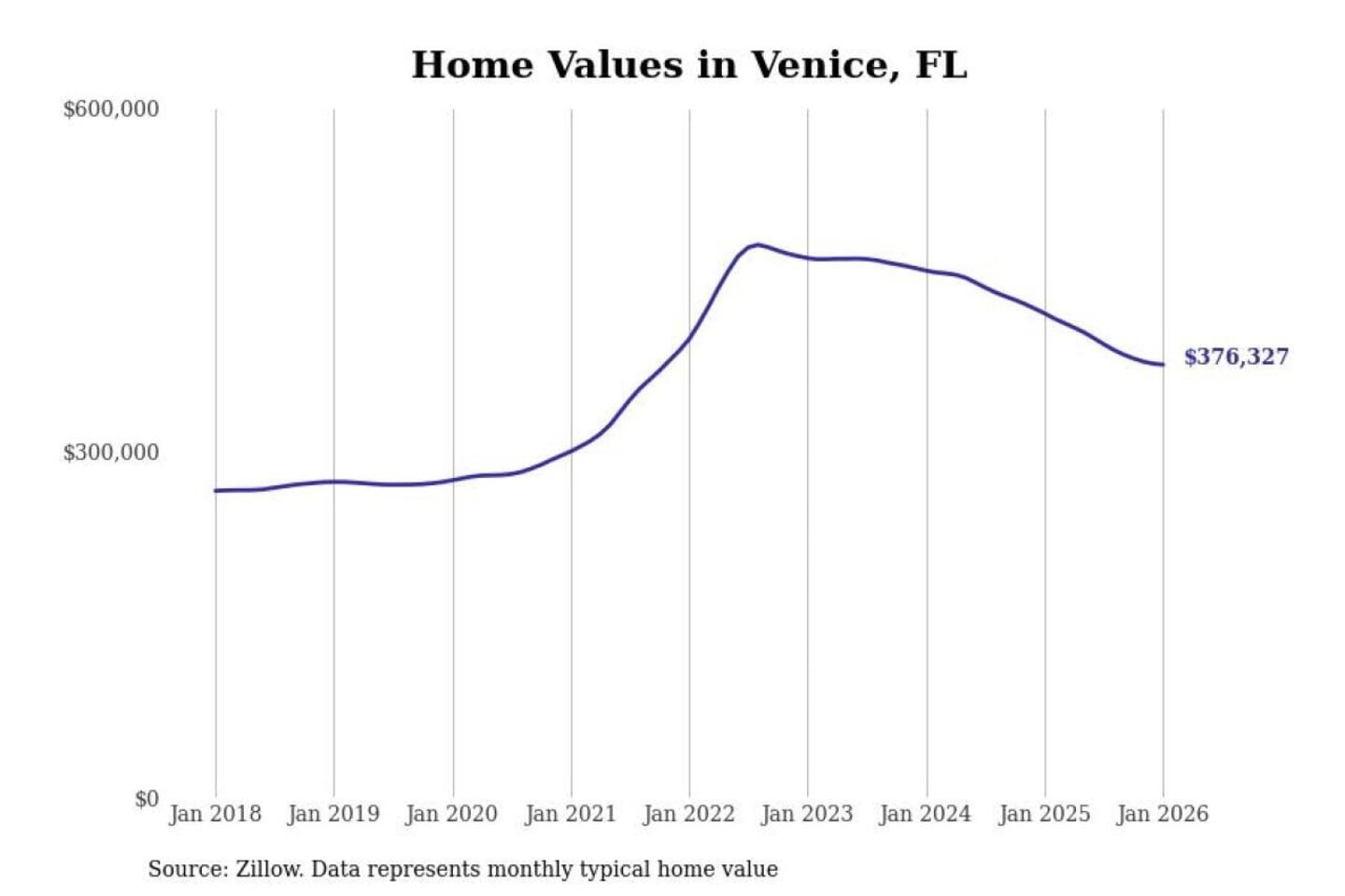 Stacker compiled a list of cities with the most expensive homes in the North Port-Sarasota-Bradenton, FL metro area using data from Zillow. Charts show the monthly typical home value since January 2018.