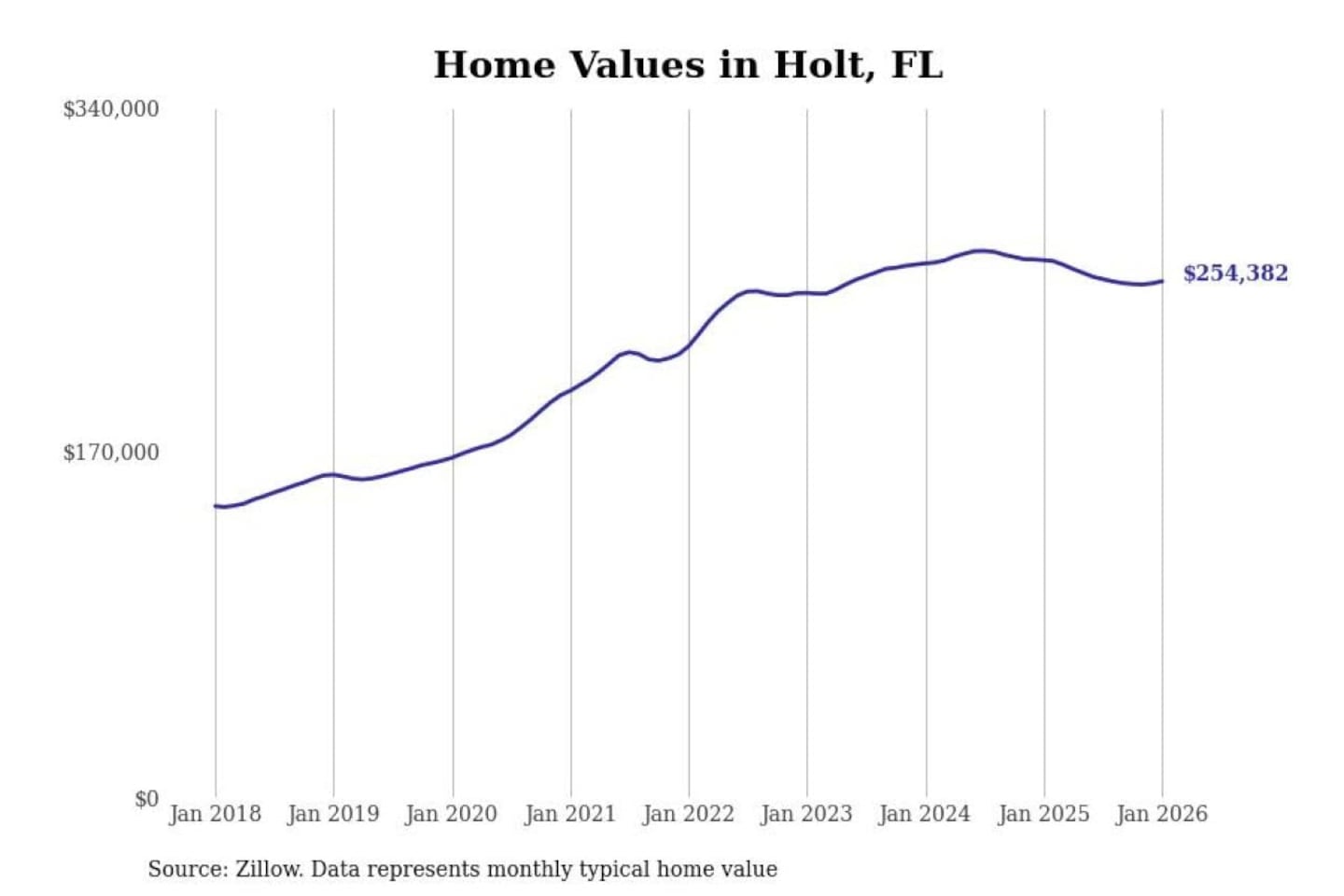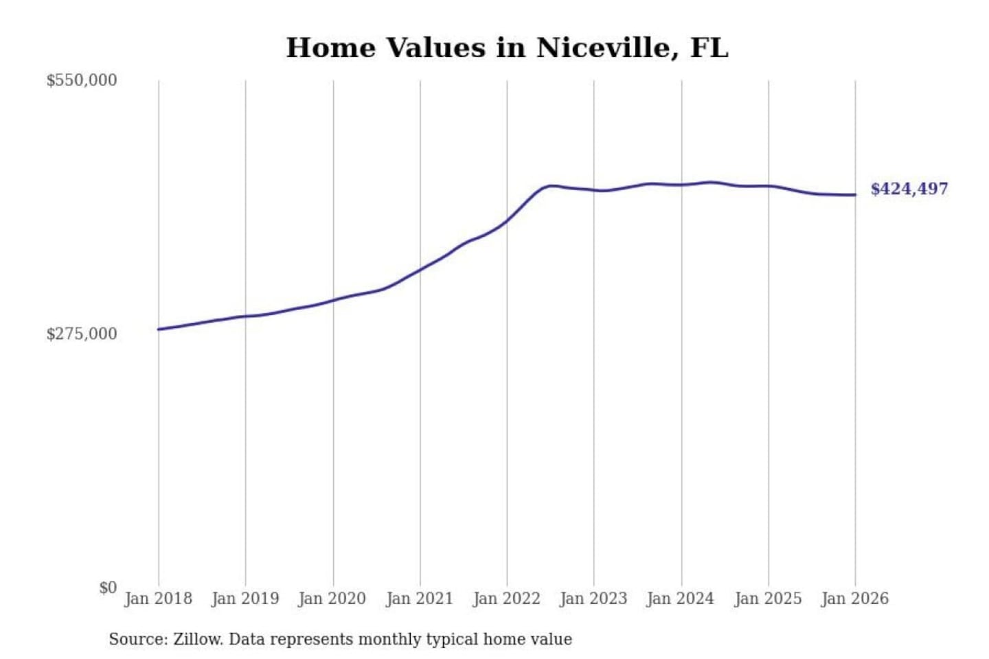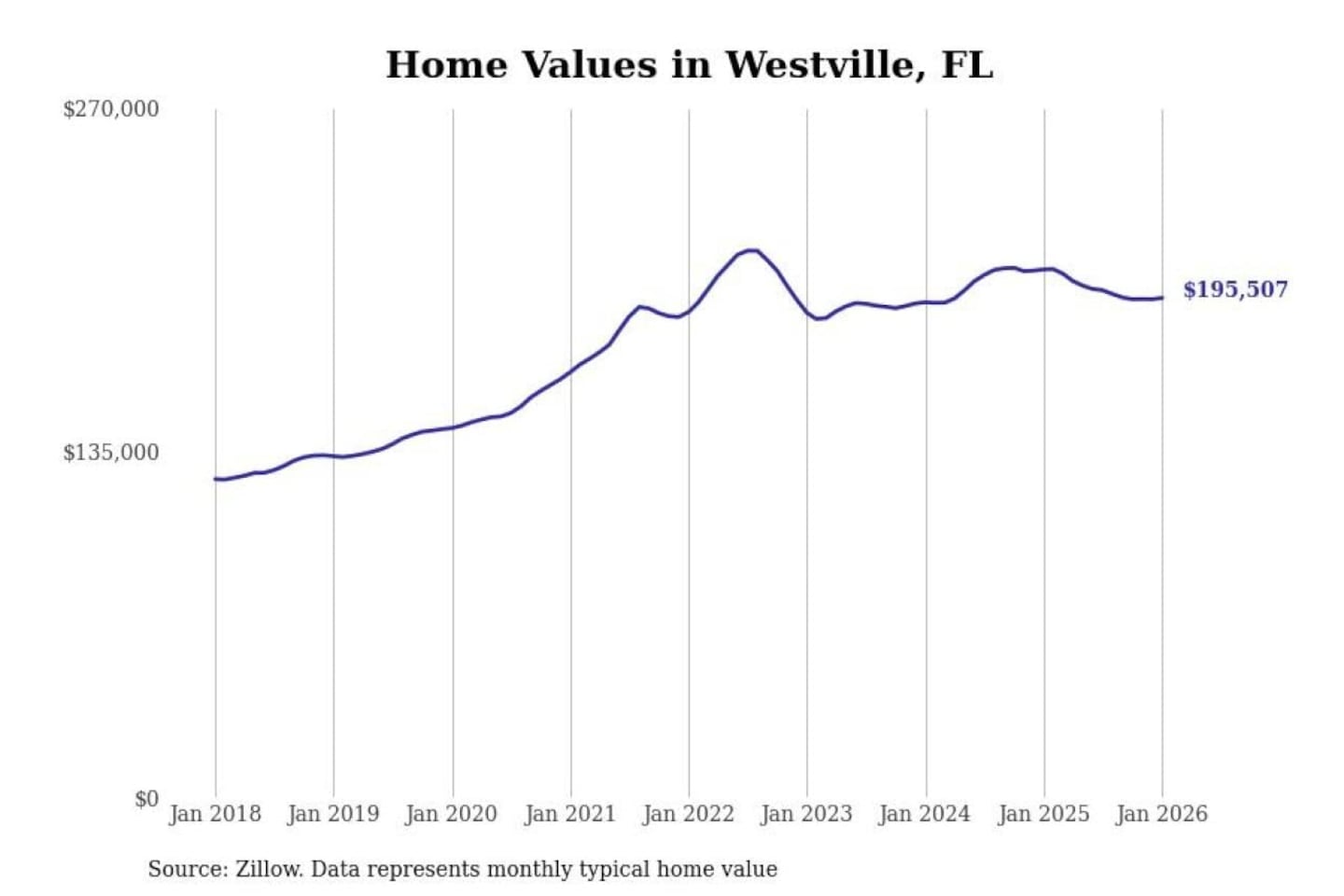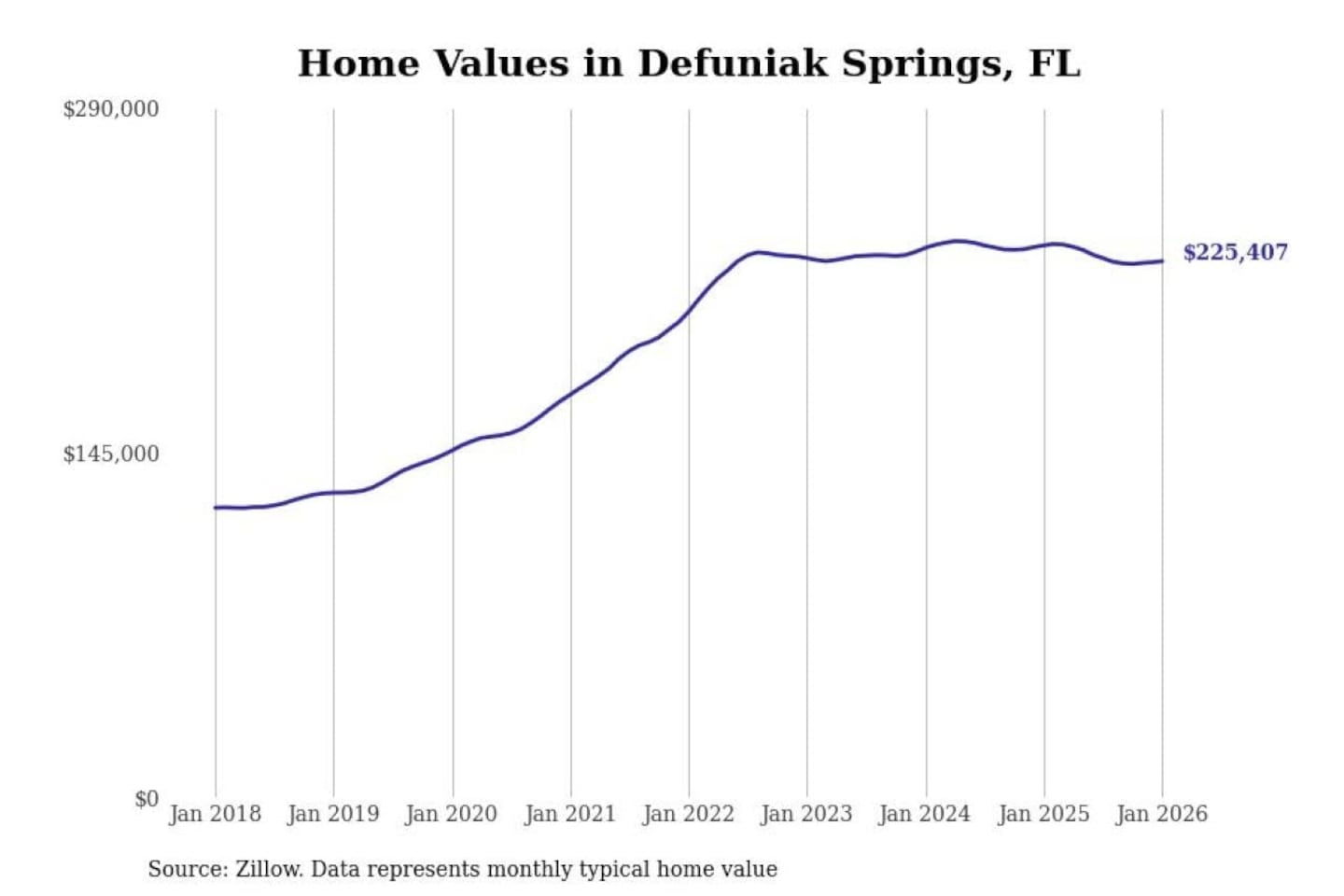 Stacker compiled a list of cities with the most expensive homes in the Crestview-Fort Walton Beach-Destin, FL metro area using data from Zillow. Charts show the monthly typical home value since January 2018.