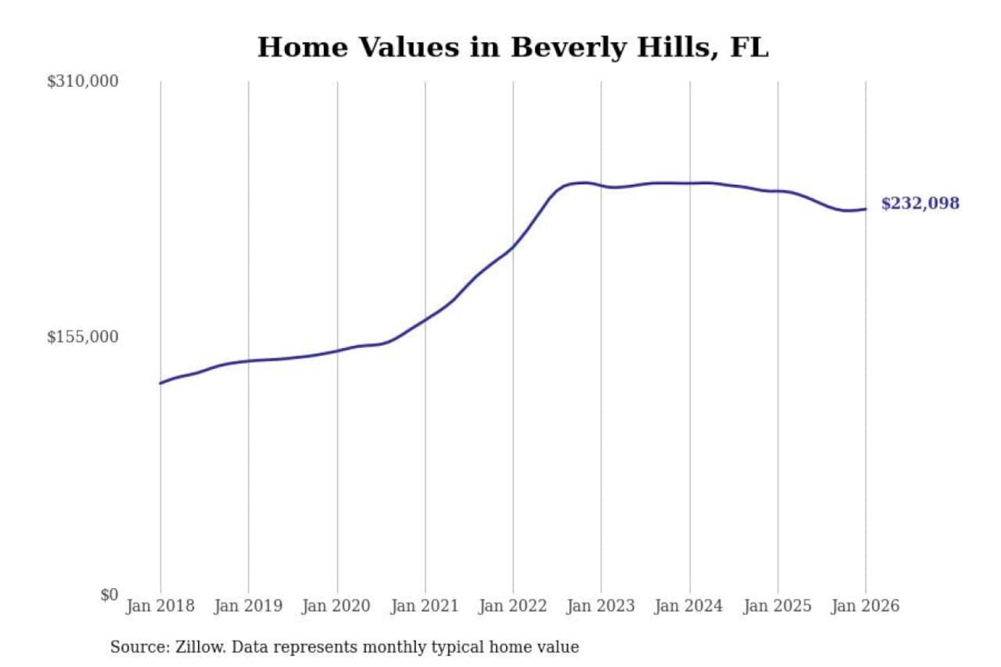 Cities with the fastest-growing home prices in the Homosassa Springs metro area