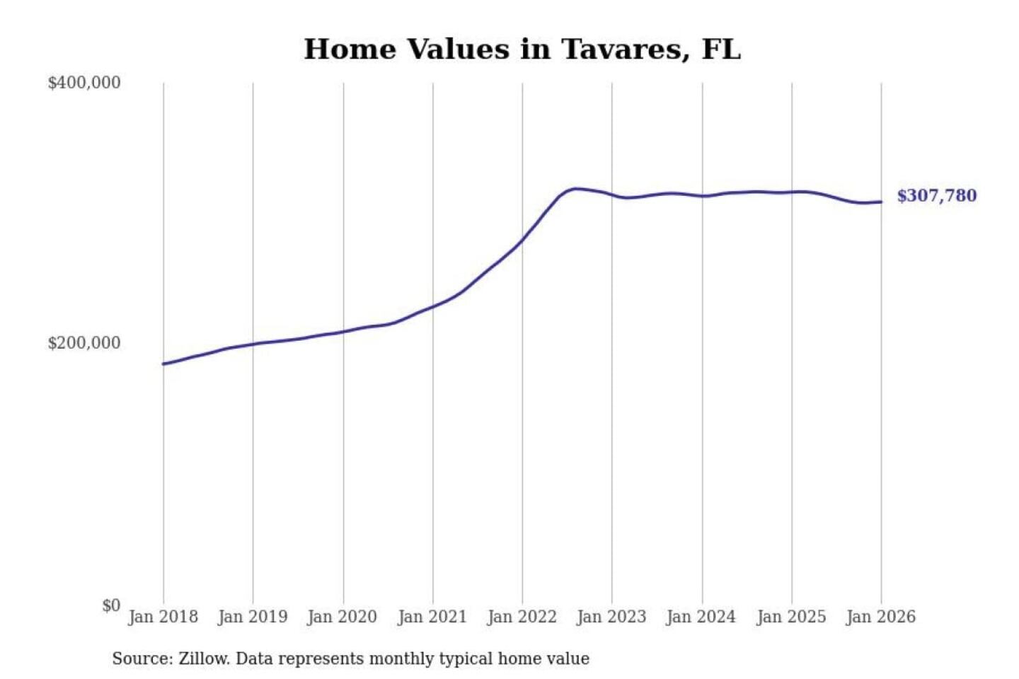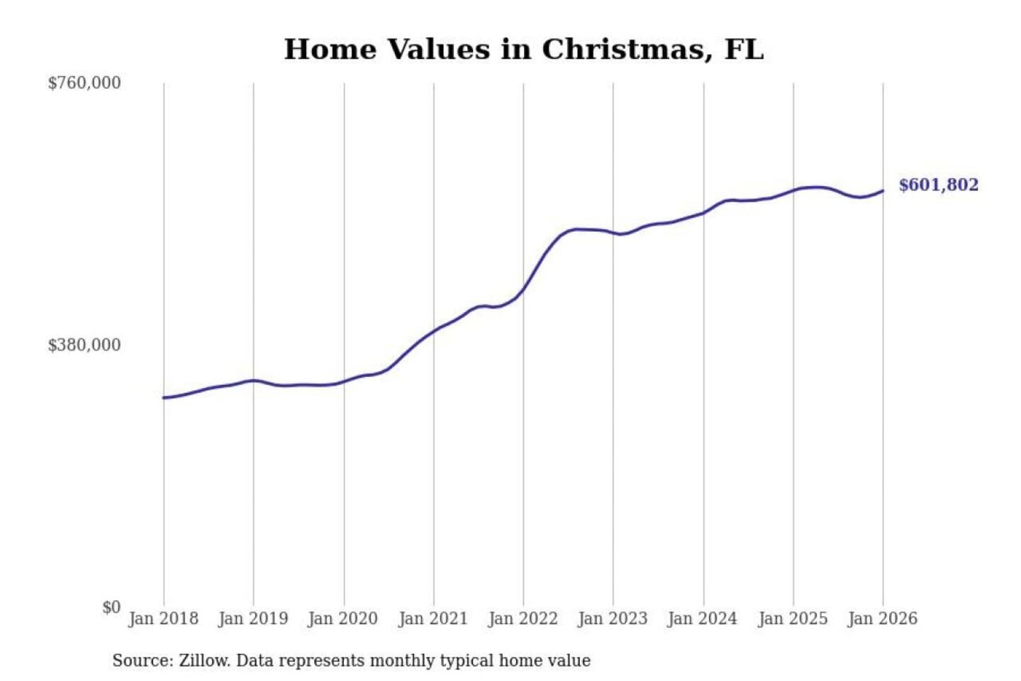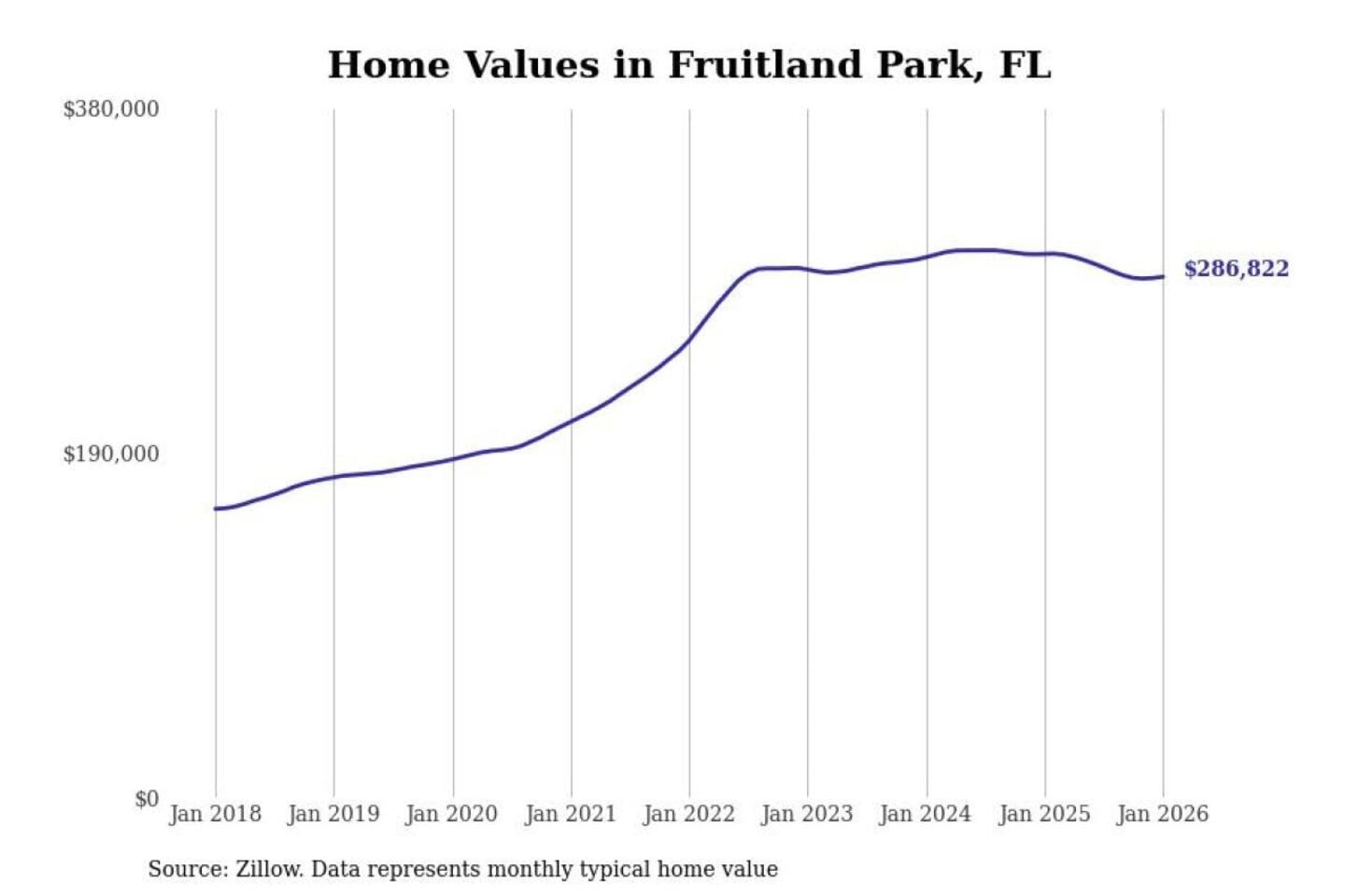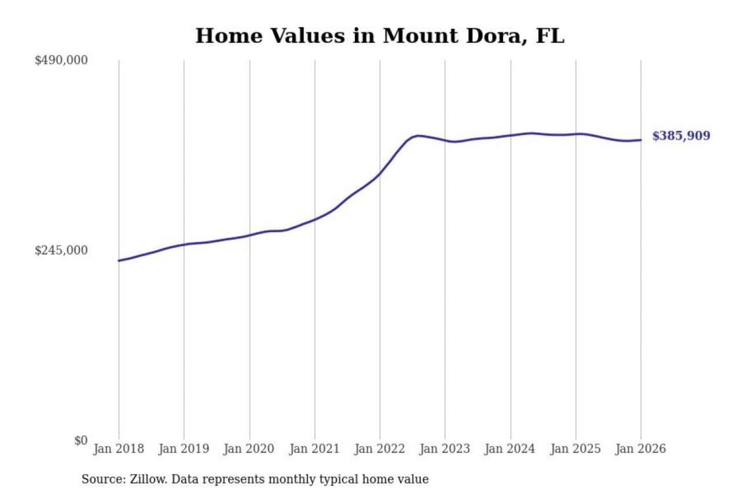 Stacker compiled a list of cities with the most expensive homes in the Orlando-Kissimmee-Sanford, FL metro area using data from Zillow. Charts show the monthly typical home value since January 2018.