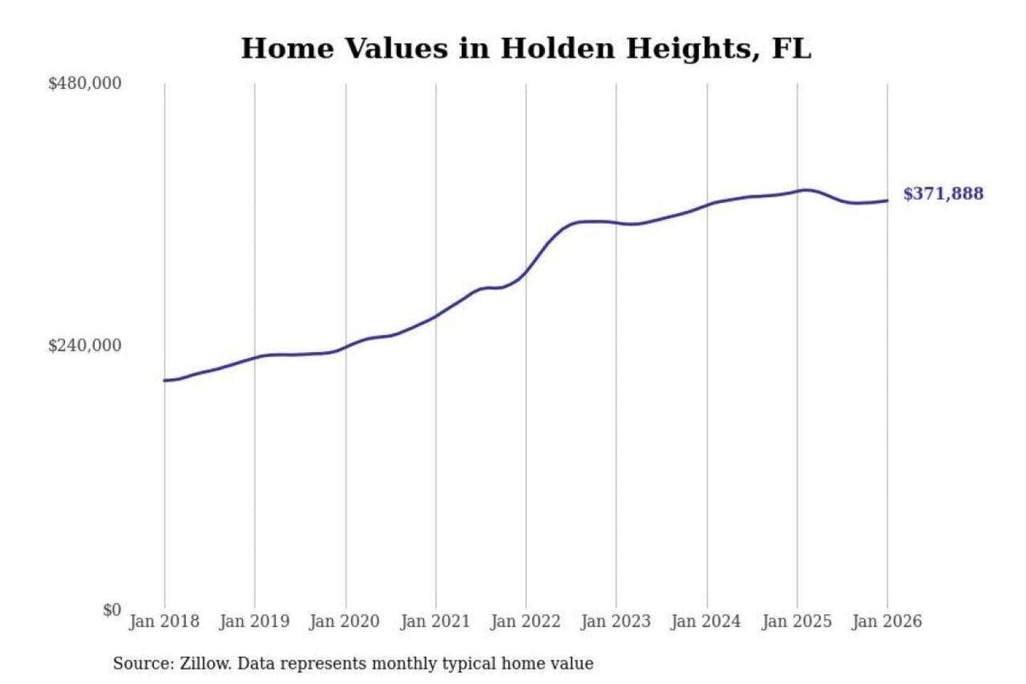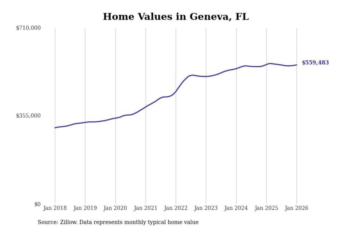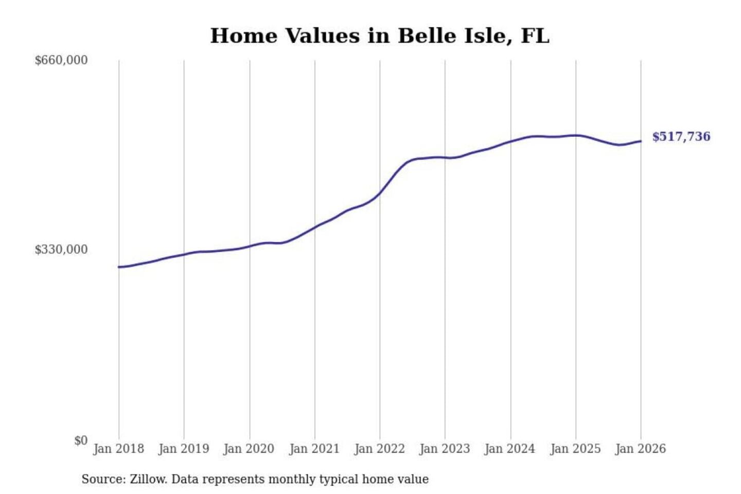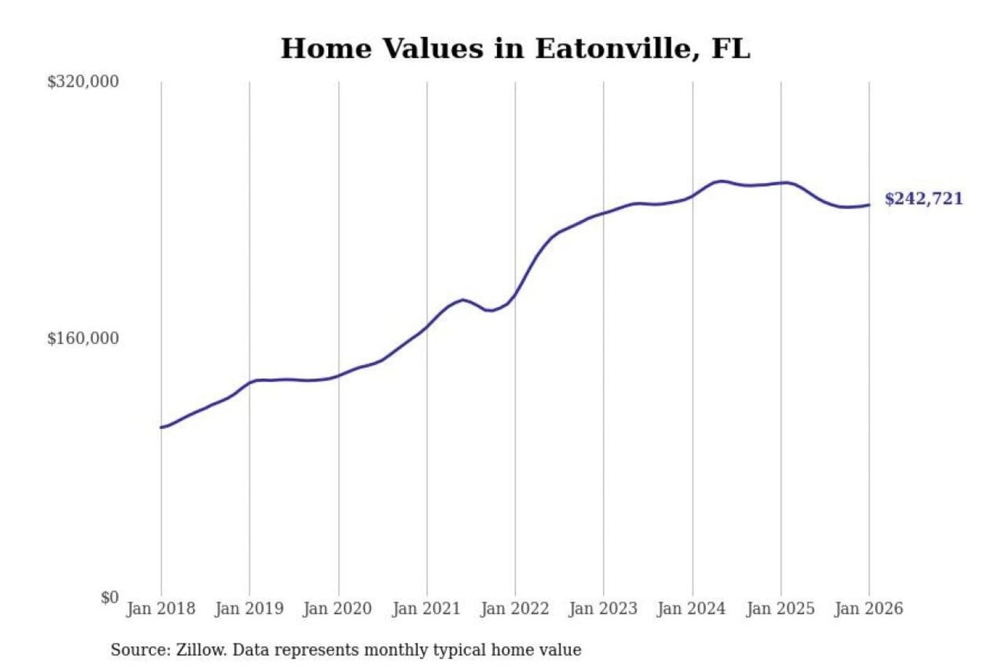 Stacker compiled a list of cities with the most expensive homes in the Orlando-Kissimmee-Sanford, FL metro area using data from Zillow. Charts show the monthly typical home value since January 2018.
