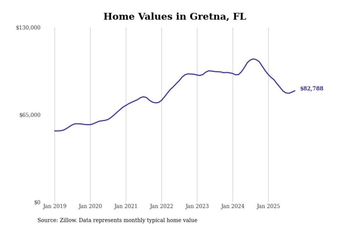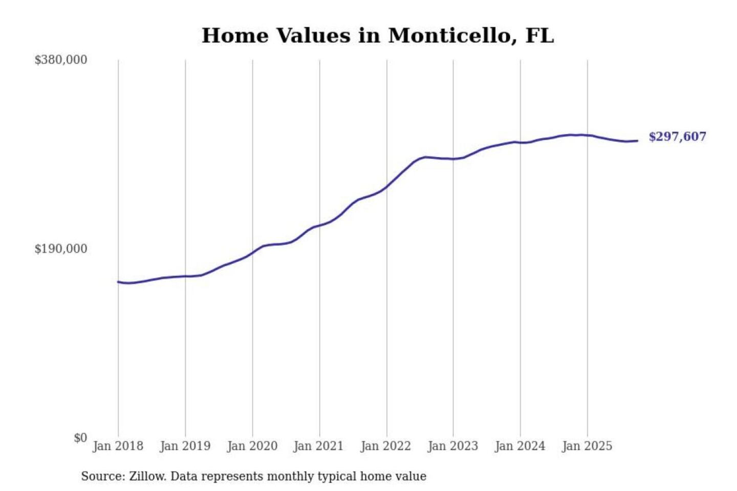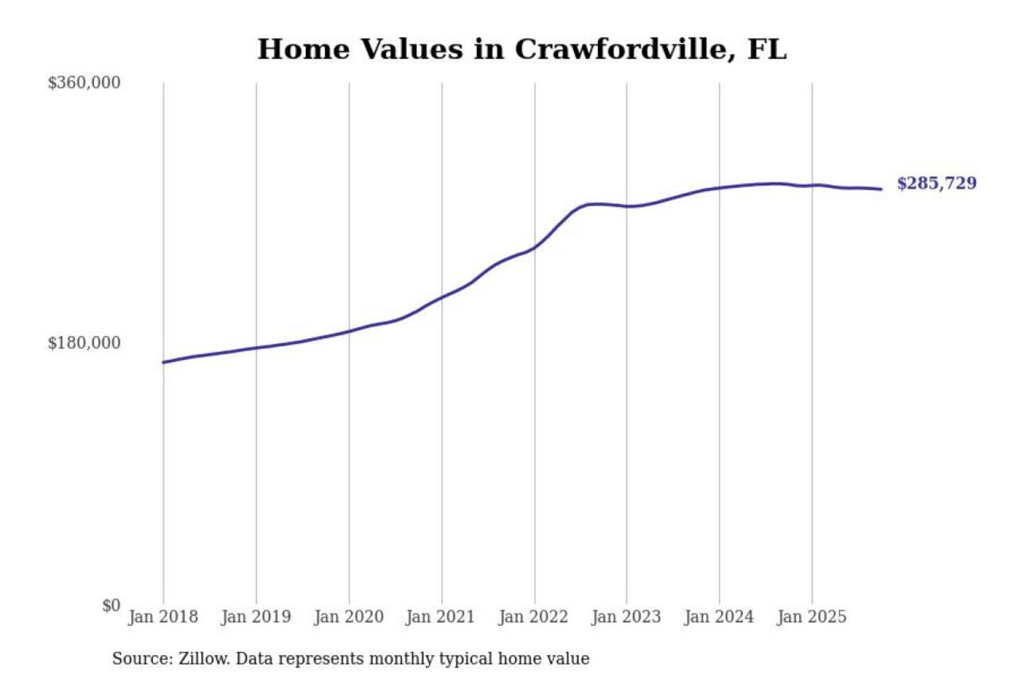 Stacker compiled a list of cities with the most expensive homes in the Tallahassee metro area using data from Zillow. Charts show the monthly typical home value since January 2018. All 11 cities and towns with data available were included in the list.