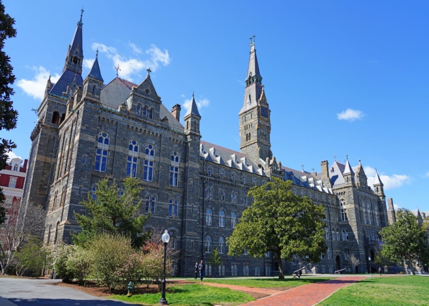 Georgetown combines a rigorous curriculum with a Jesuit identity that highlights public service, ethics, and international affairs—strengths reflected in its highly regarded programs in international relations, law, and public policy. The university's location in Washington, D.C. gives students direct access to internships, government agencies, NGOs, and international organizations for hands-on learning. Beyond that, Georgetown's professional schools and alumni network provide strong career placement and mentorship pipelines.