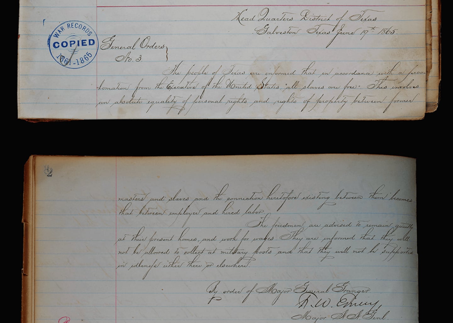 In its simplest terms, General Order #3 declared that all enslaved people in Texas were free; but the order maintained racist undertones and encouraged enslaved people to stay where they were being held to continue work—this time for wages as free men and women.