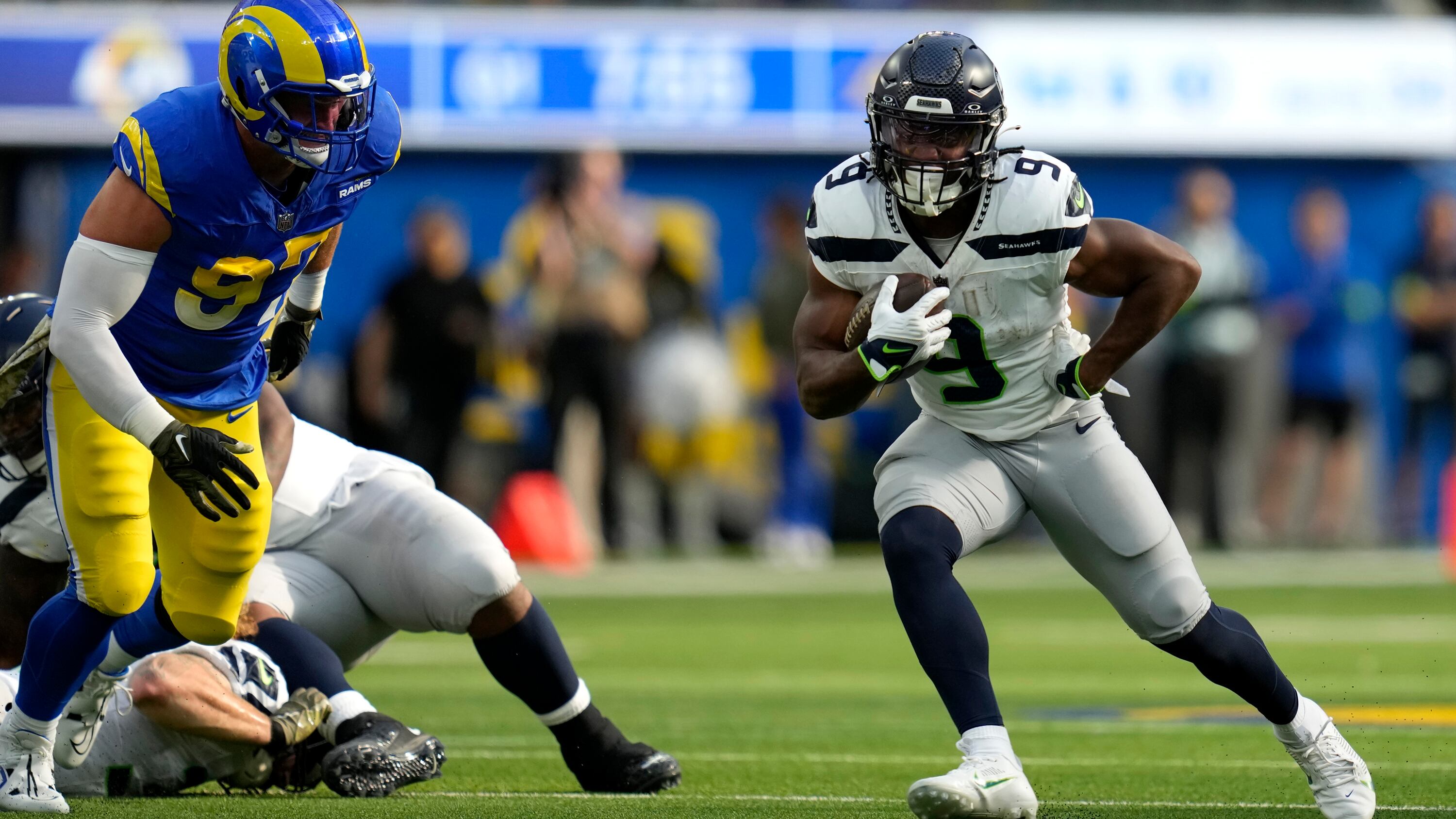 Lead running back Kenneth Walker III left the game with an oblique injury in the first quarter. He appeared to sustain the injury on a six-yard run midway through the quarter. Walker ran untouched through the first level of the Rams defense then clutched his left side before falling to the turf.