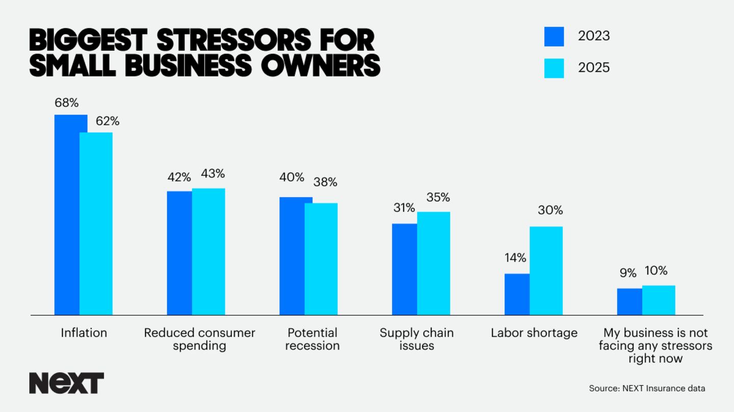 The survey indicates that inflation remains the top stressor for small business owners in 2025—though the concern has eased slightly since NEXT's last survey in 2023.