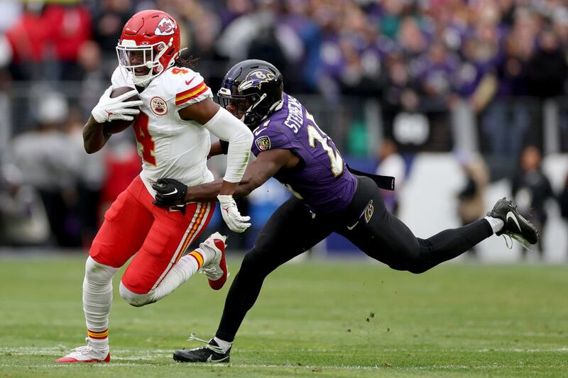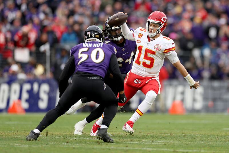 Baltimore had narrowed the Chiefs’ lead to 17-10 on Justin Tucker’s 43-yard field goal with 2:34 to play, but Kansas City maintained possession at the two-minute warning when Mahomes completed a 32-yard pass to Marquez Valdes-Scantling to the Ravens 22 on a third-down play.
