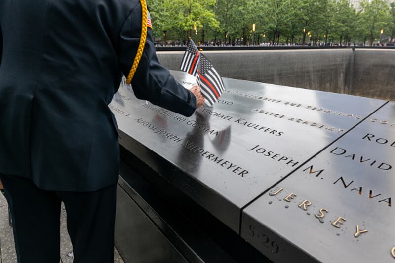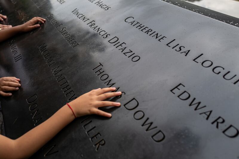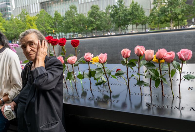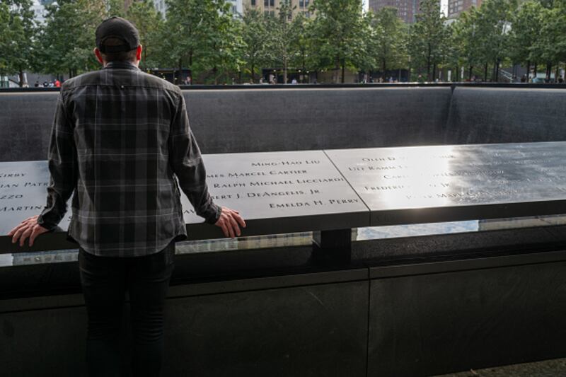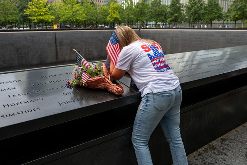 22nd Anniversary Of 9/11 NEW YORK, NEW YORK - SEPTEMBER 10: A woman mourns by a name at the 9/11 Memorial and Museum at the Ground Zero site in lower Manhattan as the nation prepares to commemorate the 22nd anniversary of the attacks on September 10, 2023 in New York City. Monday will mark the 22nd anniversary of the September 11 terrorist attacks on the World Trade Center and the Pentagon, as well as the crash of United Airlines Flight 93. In total, the attacks killed nearly 3,000 people and commenced a global war on terror which included American led conflicts in both Iraq and Afghanistan. (Photo by Spencer Platt/Getty Images) (Spencer Platt/Getty Images)