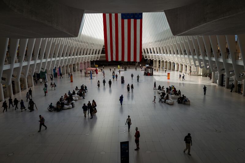 22nd Anniversary Of 9/11 NEW YORK, NEW YORK - SEPTEMBER 10: People walk through the Westfield World Trade Center, also known as the Oculus, near the 9/11 Memorial and Museum at the Ground Zero site in lower Manhattan as the nation prepares to commemorate the 22nd anniversary of the attacks on September 10, 2023 in New York City. Monday will mark the 22nd anniversary of the September 11 terrorist attacks on the World Trade Center and the Pentagon, as well as the crash of United Airlines Flight 93. In total, the attacks killed nearly 3,000 people and commenced a global war on terror which included American led conflicts in both Iraq and Afghanistan. (Photo by Spencer Platt/Getty Images) (Spencer Platt/Getty Images)
