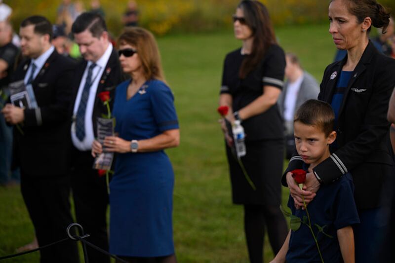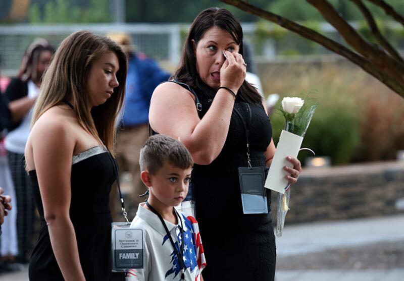 9/11 anniversary SHANKSVILLE, PENNSYLVANIA - SEPTEMBER 11: Family members of the victims wait in line to recite their name during the bell-ringing ceremony commemorating the 22nd anniversary of the crash of Flight 93 during the September 11, 2001 terrorist attacks at the Flight 93 National Memorial on September 11, 2023 in Shanksville, Pennsylvania. The nation is marking the 22nd anniversary of the September 11 attacks, when the terrorist group al-Qaeda flew hijacked airplanes into the World Trade Center, Shanksville, PA and the Pentagon, killing nearly 3,000 people. (Photo by Jeff Swensen/Getty Images) (Jeff Swensen/Getty Images)